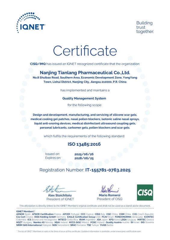 南京天朗制藥有限公司是研發、生產、銷售為一體的新興制藥企業。成立于2005年3月,于2013年9月江蘇省首家通過無菌滴眼液新版GMP認證。生產基地座落于南京溧水工業園區,交通便利,環境優美。生產基地的一期工程占地70畝,一期投資2200萬。現有員工近160人,其中80%的員工具有醫藥、化學等專業背景,30%的員工具有中級以上職稱。90%以上的員工具有多年藥品生產、銷售和管理經驗。公司擁有現代化的滴眼劑、滴耳劑、滴鼻劑、噴霧劑GMP生產車間及軟膏劑、溶液劑、凝膠劑生產線;配有專業的研發團隊;中等偏上,逐步加大的營銷體系。